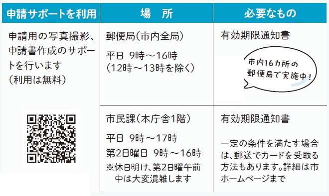有効期限の3か月前から更新の手続きができます。カードの申請から受取まで2か月程度かかります。余裕を持って申請をしてください。