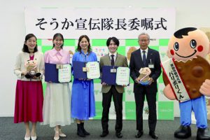 メディア出演や公演等の活動を通して市の魅力を全国に発信するそうか宣伝隊長に、新たに3人が就任しました。