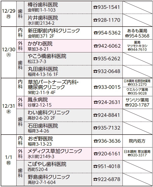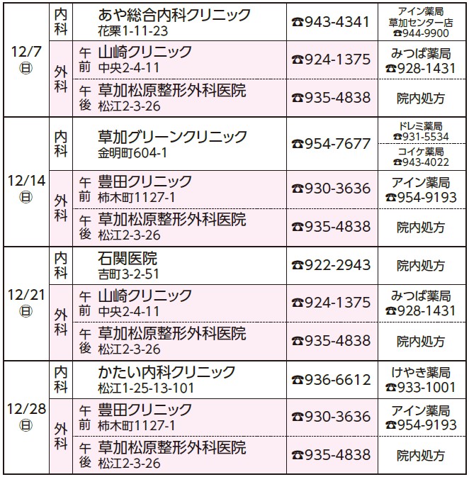 薬局は当番医周辺の営業している薬局です(時間は各局へ確認を)。