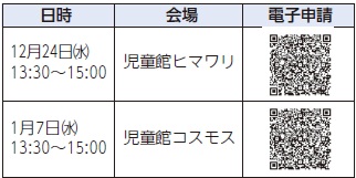 費用:無料。持ち物は問い合わせ先へご確認ください