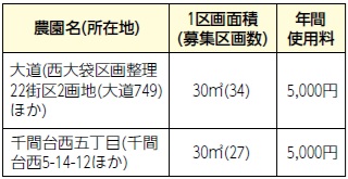 対象:市内在住で、貸し付け条件を守り、年間を通して除草など区画管理のできる18歳以上の方(抽選)。1世帯1区画(重複申し込み、区画の指定不可)。ほかの市民農園・いきいき農園の利用世帯を除く