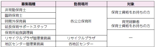 しごと 〔令和8年4月採用〕会計年度任用職員募集 32/66 前の記事 次の記事 記事を読み上げる 発行日 : 2026年01月01日 自治体名 : 埼玉県越谷市 広報紙名 : 広報こしがや 令和8年1月号 募集職種・勤務場所・対象:下表のとおり 募集人数:若干名 申込み:1月5日(月)~2月6日(金)(必着)。勤務条件や申し込み方法等、詳しくは市ホームページを参照 問合せ:人事課(第二庁舎4階) 【電話】963-9132 HP:111452 Tweet シェアする 意見募集 お知らせ(1)