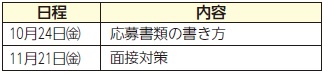 申込み:10月1日(水)~21日(火)。写真を貼った市販の履歴書を本人が窓口へ。後日、面接および作文試験を実施