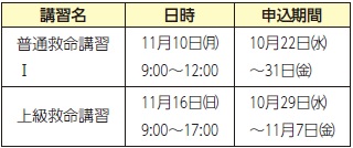 申込み:11月6日(木)まで(消印有効)。電子申請、往復はがき(紙面上部の必須事項、生年月日、勤務先の名称・住所・電話番号を明記)。結果は11月13日(木)までに通知