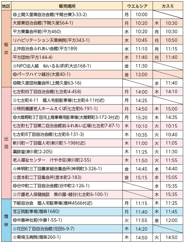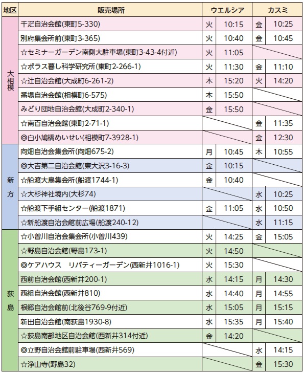 ☆…販売時間変更場所