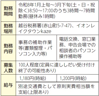 申込み:随時。電話。後日面接あり(簡単なパソコン操作あり)。採用可否は文書等で通知
