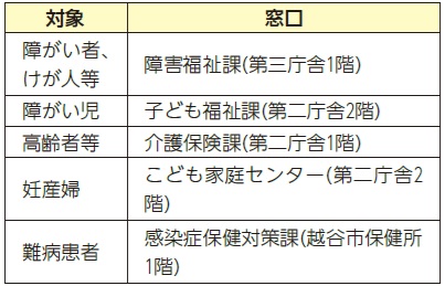 申込み:電子申請、必要書類を県福祉政策課(〒330-9301さいたま市浦和区高砂3-15-1)へ郵送または下表の窓口へ。詳しくは県ホームページを参照