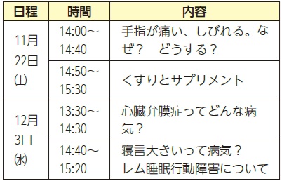 ・11月22日(土)…順天堂越谷病院集会ホール(袋山560)、100人