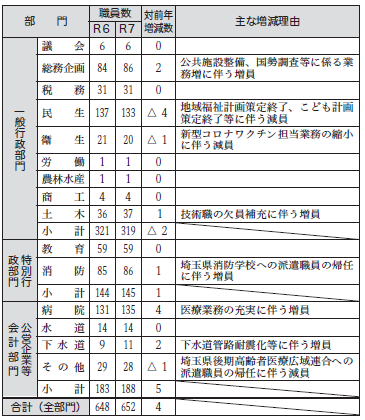(4)部門別職員数の状況(各年4月1日現在) 単位(人)