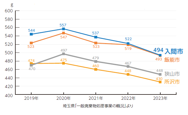 実は、入間市の一人当たりのごみ排出量は、所沢市や狭山市と比べると10%~15%多い!