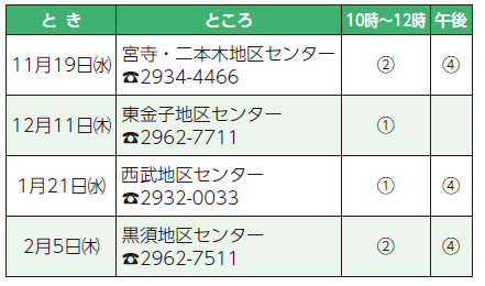 場所:11月黒須、12月東金子、2月宮寺、3月西武
