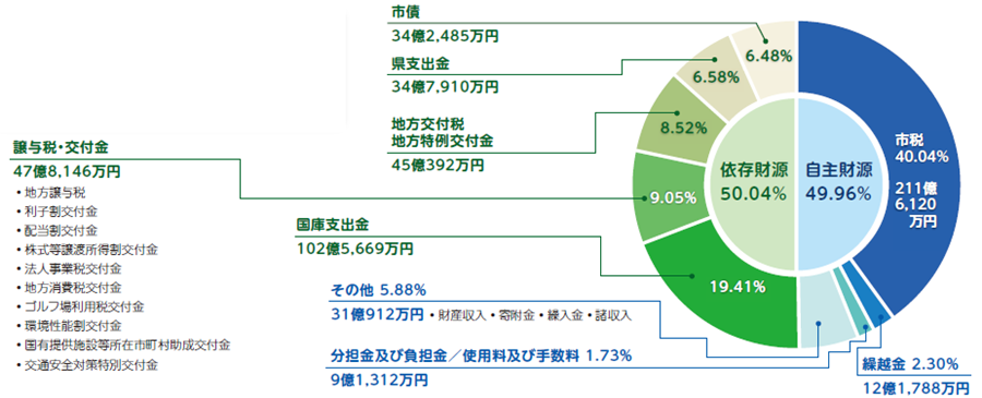 令和6年度は、増え続ける社会保障経費に、賃金上昇や物価高騰、さらには一斉に老朽化を迎えた公共施設の建替や改修なども加わり、歳出が大きく増加しました。このため、市の貯金(財政調整基金)を取り崩し、借金(市債)を借り入れることで、不足する財源を補いました。今後も、財政状況は一層厳しくなることが見込まれているため、事業の見直しや効率化による歳出の縮減や、新たな財源による歳入の確保に取り組んでいきます。