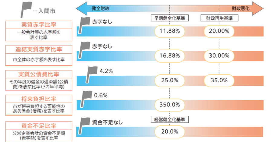 「地方公共団体の財政の健全化に関する法律」の規定に基づく指標は以下のとおりです。