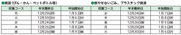 また、燃やすごみの水・土コースに限り、12月31日(水)も臨時収集します。