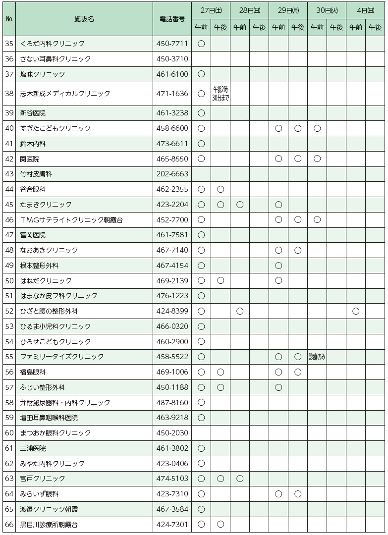 ※診療予定日は変わる可能性があります。受診の際は、必ず医療機関に確認してからお出かけください。