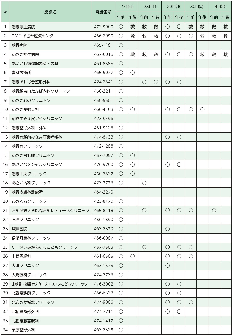 ※12月31日(水)~1月3日(土)は、朝霞厚生病院・TMGあさか医療センター・あさか相生病院の救急のみ診療実施予定です。