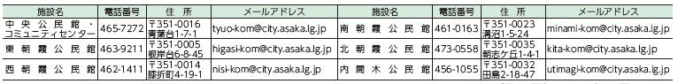 中央公民館・コミュニティセンター休館中は、東朝霞公民館と南朝霞公民館を全日開館します。