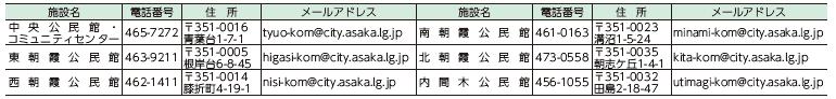 ・中央公民館・コミュニティセンター休館中は、東朝霞公民館と南朝霞公民館を全日開館します。