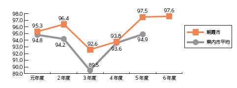 〔参考〕令和5年度は、経常収支比率の低い順(良い方)からみて、朝霞市は県内40市中33番目でした。