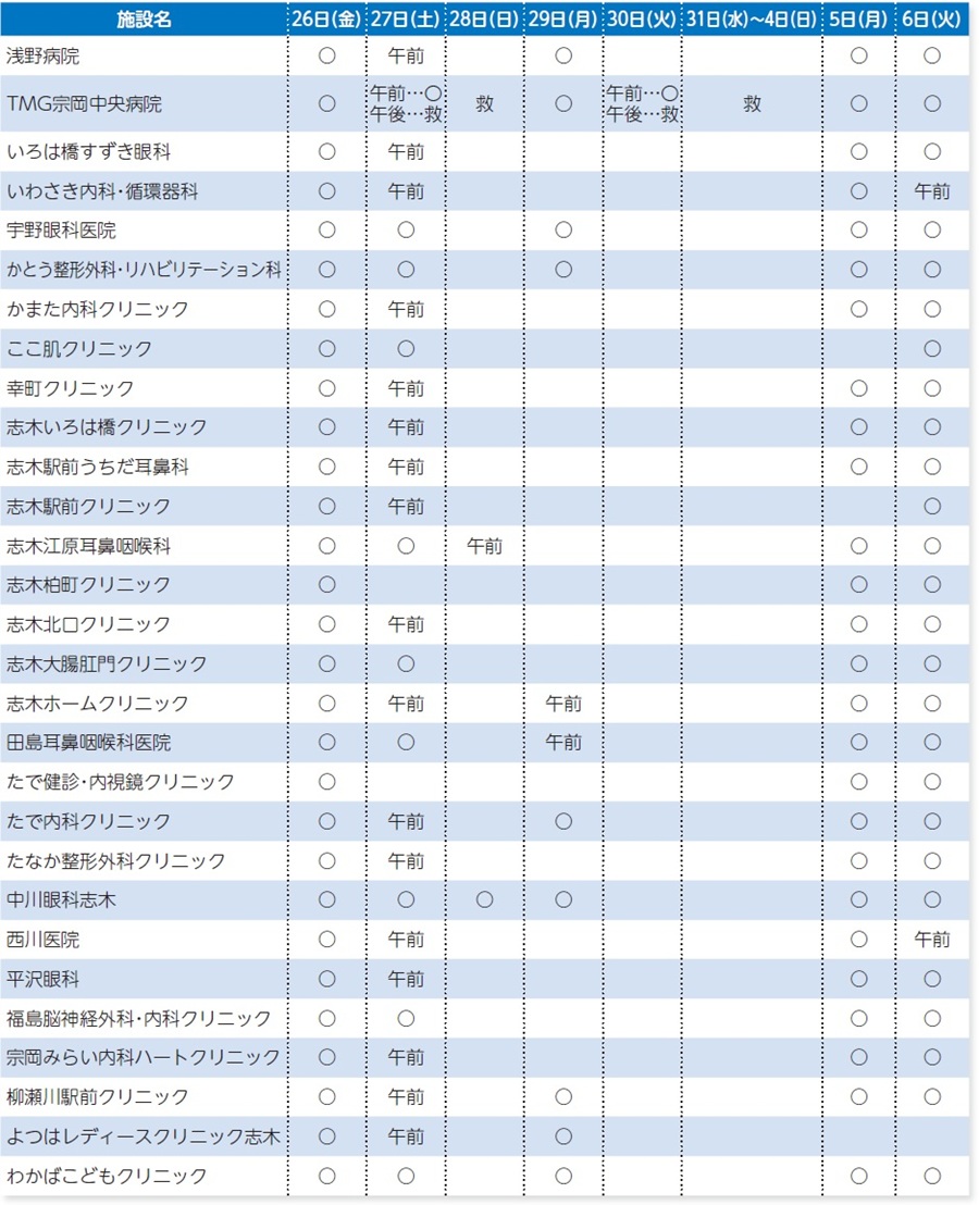 午前:午前のみ 午後:午後のみ 救:救急体制
