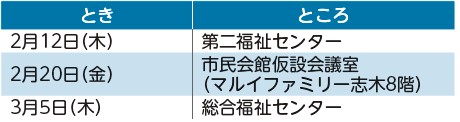 27日…市民会館仮設会議室(マルイファミリー志木8階)
