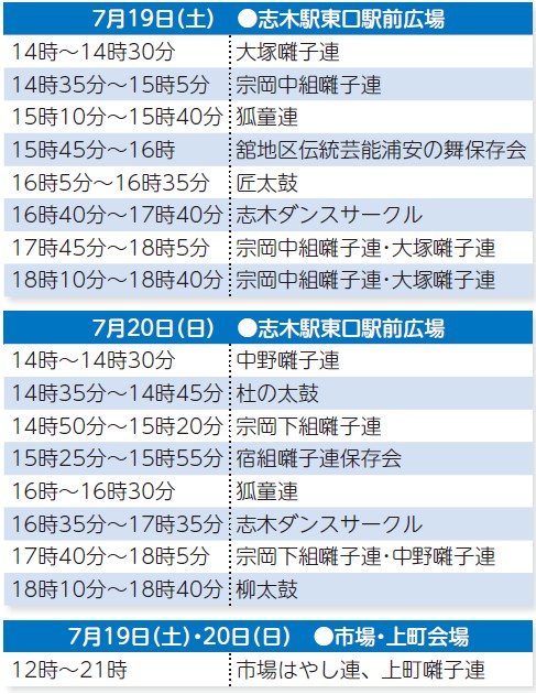 志木市に残る郷土芸能を後世に伝えるとともに、後継者の育成・技術の向上を図ることを目的に、市内の郷土芸能団体がお囃はやし子や太鼓の演奏などを披露します。