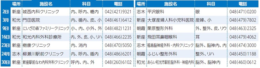 当番医は変更になる場合がありますので、必ず確認してからお出かけください。この時間以外の診療は、志木消防署[【電話】048-472-0119]へお問い合わせください。