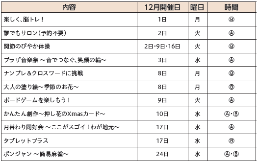 日時:12月2日(火)・16日(火)13:30~14:30