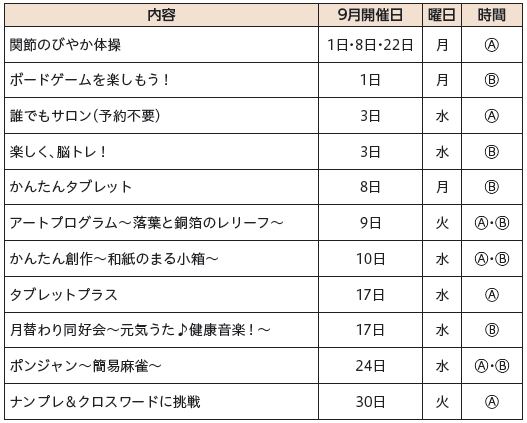 日時:9月2日・16日・30日の各火曜日13:30~15:00