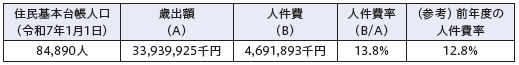 (2)職員給与費の状況(令和7年度一般会計当初予算)(単位:千円)
