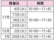 申し込み:10月23日(木)までにまちかど元気あっぷへ氏名・生年月日・住所・電話番号・ALKOOマイレージ登録の有無を電話またはEメールで