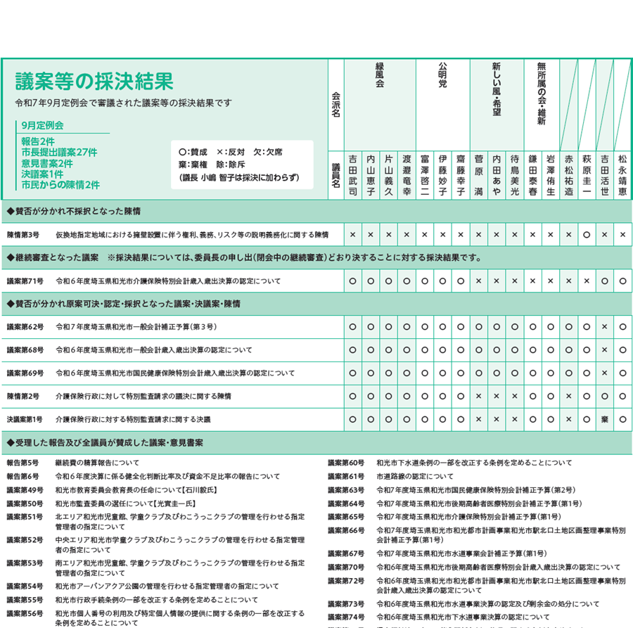 定例会・臨時会で審議された議案・陳情等の内容や採決結果を、市議会ホームページで公開しています。ぜひ、ご覧ください。