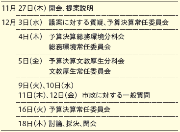 正式な日程・市政に対する一般質問の議員発言順位は、11月25日(火)開催予定の議会運営委員会で決定します