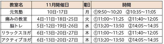 日時:11月6日・13日・20日・27日の各木曜日 11:20~12:00