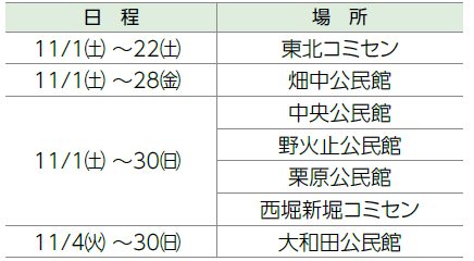 講座 公民館・コミュニティセンター サークル見学・体験会 29/41 前の記事 次の記事 発行日 : 2025年11月01日 自治体名 : 埼玉県新座市 広報紙名 : 広報にいざ 令和7年11月号(No.1103) 新しいことを始めたい方、趣味を見付けたい方、仲間づくりをしたい方、サークルデビューしてみませんか。 ■11月の見学・体験会日程 Tweet シェアする 公民館(3) 市民会館・ふるさと新座館