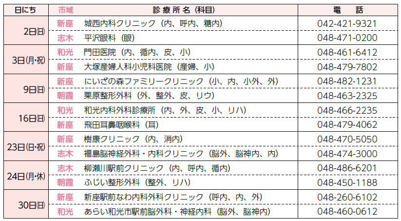 ■日曜日・祝日・休日に診療実施の医療機関(10:00~16:00)