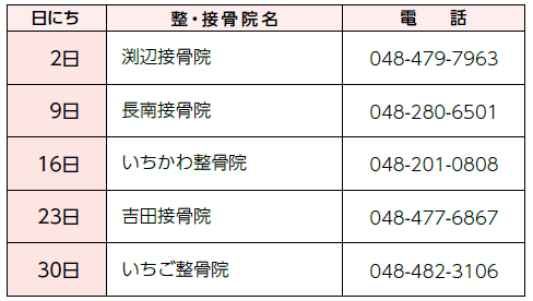 ■日曜日に診療実施の市内の整・接骨院(9:00~12:00)