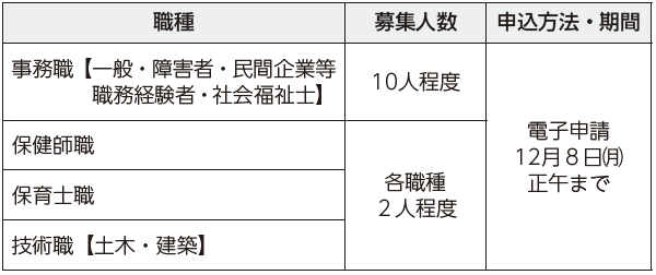 ※詳細は市ホームページまたは市役所(情報コーナー・職員課)で配布している受験案内を参照してください。