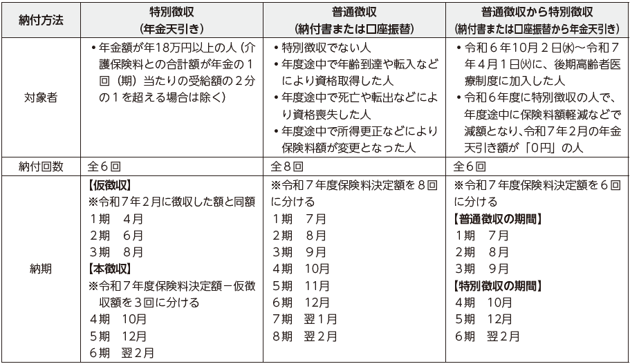 ※保険料の納め方を、特別徴収から普通徴収(口座振替)に変更することができます。希望する場合は、保険年金課へ問い合わせてください(切り替えには、2~4か月かかります)。