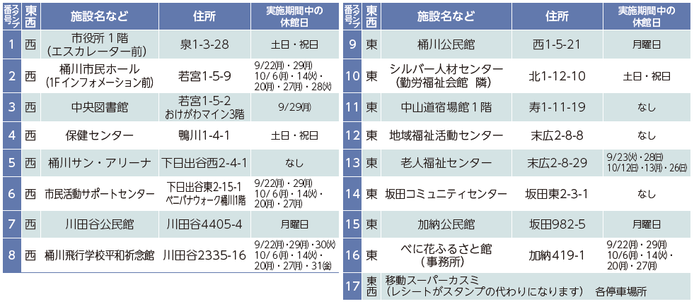 期間:9月17日(水)~10月31日(金)(各施設の開館日、開館時間内で実施)