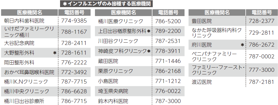 ※北本市・鴻巣市・伊奈町の実施医療機関については、健康増進課へ問い合わせてください。