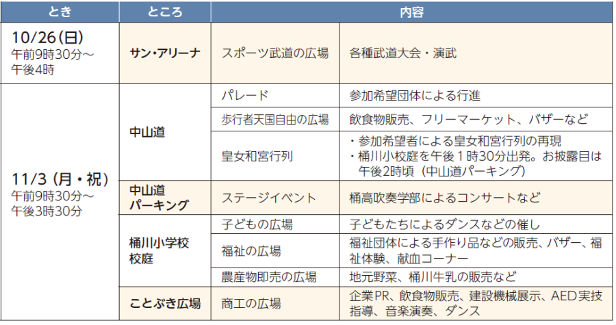 11月3日(月・祝)文化の日を中心に市民まつりが開催されます。たくさんのイベントがありますので、ぜひお越しください。