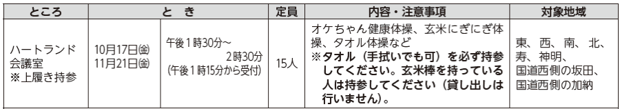注意事項:教室の参加は、1か月に1回まで(10月に1回、11月に1回)とします。参加する場合は、必ず健康チェックを行ってください。