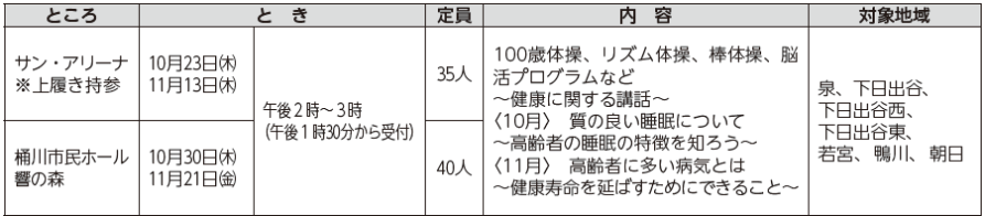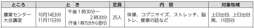 ※地域包括支援センター桶川市社会福祉協議会の10月9日(木)の教室の申し込みは、10月1日(水)~8日(水)までです。