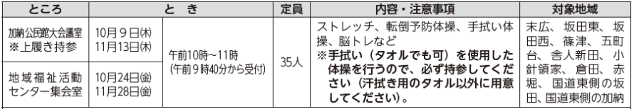 ※地域包括支援センターねむのきの10月14日(火)の教室の申し込みは、10月11日(土)までです。