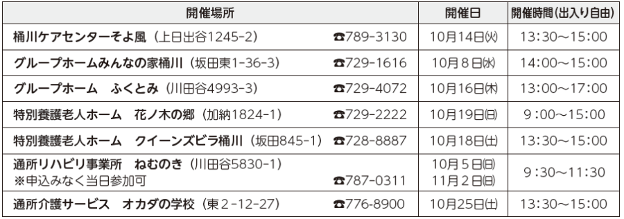 ★事前申し込み制となります。各開催場所に連絡のうえ、お越しください。