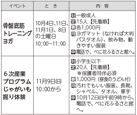 ※うどん・そば打ち、木工、書道、陶芸の各教室は、要問合せ。