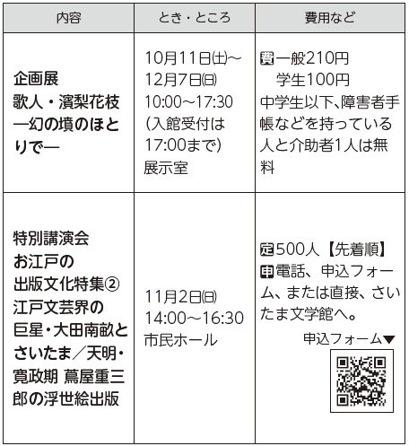 申込み:10月1日(水)から25日(土)までに、電話、または直接、市内各図書館へ。