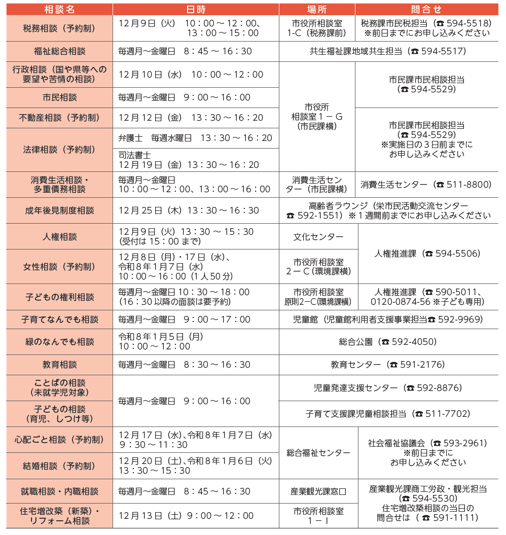 くらし 各種相談案内 39/46 前の記事 次の記事 発行日 : 2025年12月01日 自治体名 : 埼玉県北本市 広報紙名 : 広報きたもと 令和7年12月号 ※状況により中止になる場合があります。 ※相談日が祝日のときはお休みです。 相談日:12月8日~令和8年1月7日 Tweet シェアする 母子保健のご案内 北本あんぜん情報 第138号