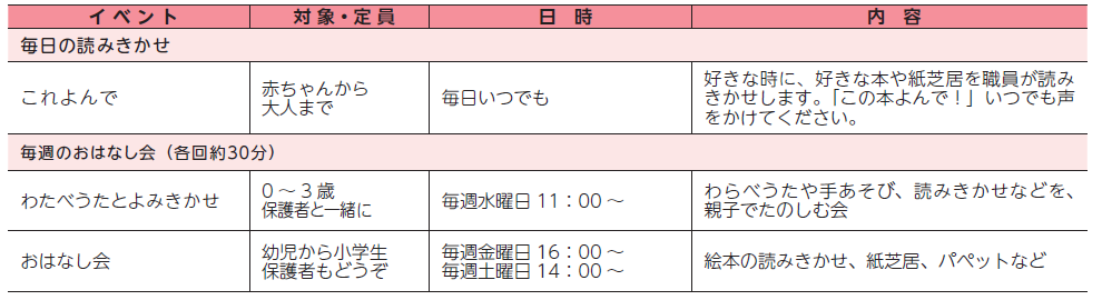 子育て こども図書館 38/48 前の記事 次の記事 発行日 : 2026年01月01日 自治体名 : 埼玉県北本市 広報紙名 : 広報きたもと 令和8年1月号 ※おはなし会に参加したらスタンプを押してね!スタンプ4個で北本市立こども図書館特製シールを1枚さしあげます! ※第2土曜日と第4金曜日のおはなし会は、北本市子ども文庫連絡会、北本子どもの本を楽しむ会との協働おはなし会です。 問合せ:こども図書館 【電話】598-7642【FAX】598-4785 Tweet シェアする 児童館 母子保健のご案内
